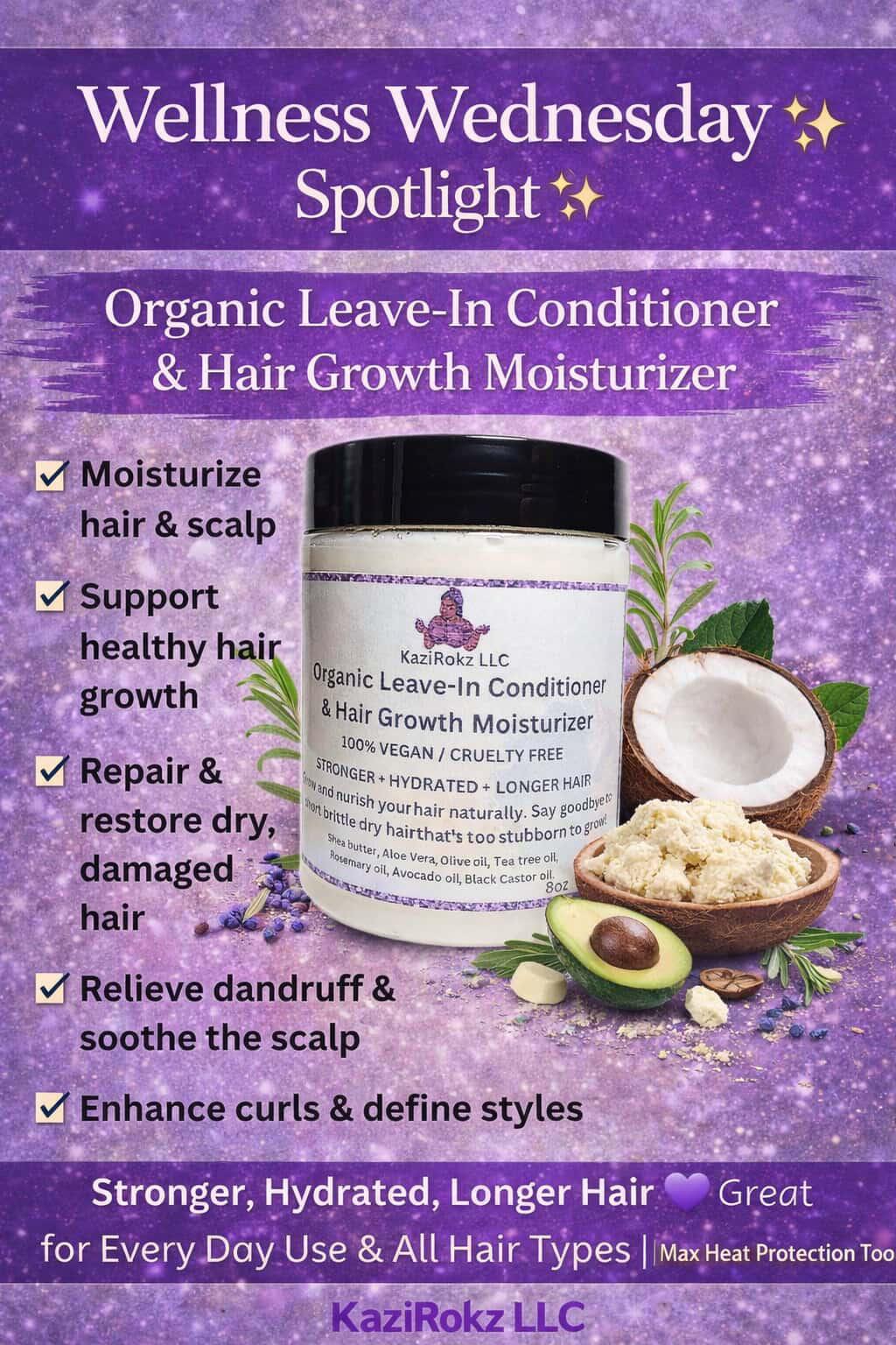 Organic Leave- In Hair Conditioner 8oz. (100% Vegan / Cruelty Free) / Mega Gro!!!