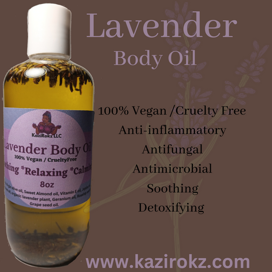 Lavender Body Oil (100% Vegan / Cruelty Free) 8oz Soothing Detoxifying Antibacterial Anti-aging Body Oil