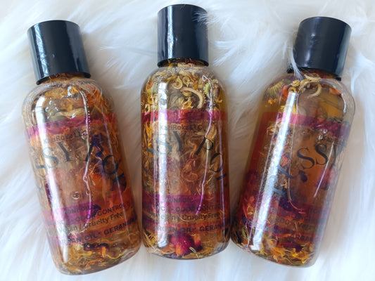 Organic Flowers Skin Therapy Body Oil soothing ECZEMA Body oil. 100% Vegan/ Cruelty Free. 8oz. Rose Petals & Camomile.
