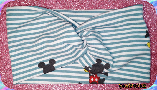 Mickey Mouse Knotted Headwrap (White/ light blue strips)