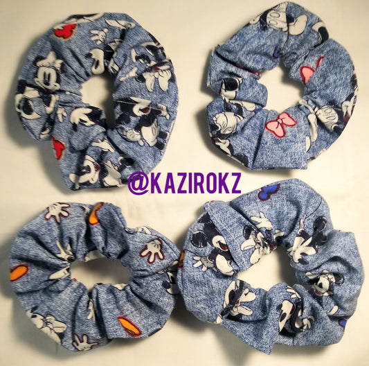 Mickey & Minnie Mouse (denim & hearts) Hair Scrunchie