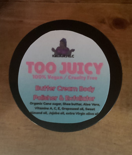 Too Juicy butte cream Body Polisher & Exfoliator. Foaming body scrub 4oz. 100% Vegan/ Cruelty Free