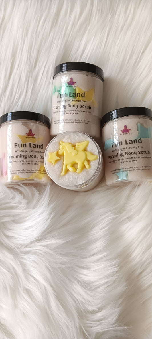 FUN LAND Foaming Body Scrub FOR KIDS! 100% Vegan/ Cruelty Free and handmade with organic ingredients. Bath time fun, Soap and soap scrub. Sensitive skin, dry skin treatment.