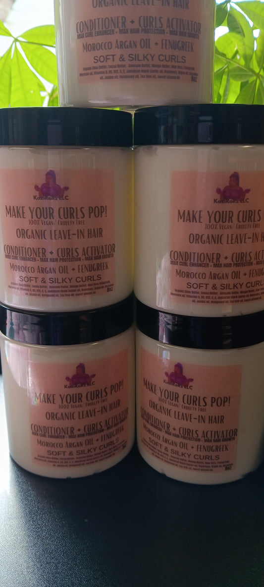 MAKE YOUR CURLS POP! ORGANIC LEAVE-IN HAIR CONDITIONER + CURLS ACTIVATOR! 100% Vegan/ Cruelty Free 8oz Soft & Silky