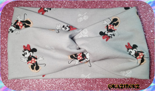 Minnie Mouse Knotted Headwrap (Gray/white flower)