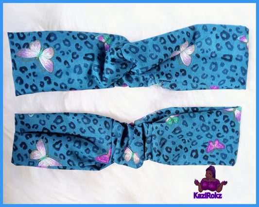 Animal Print / Butterfly Knotted Headband (Turquoise/Purple)