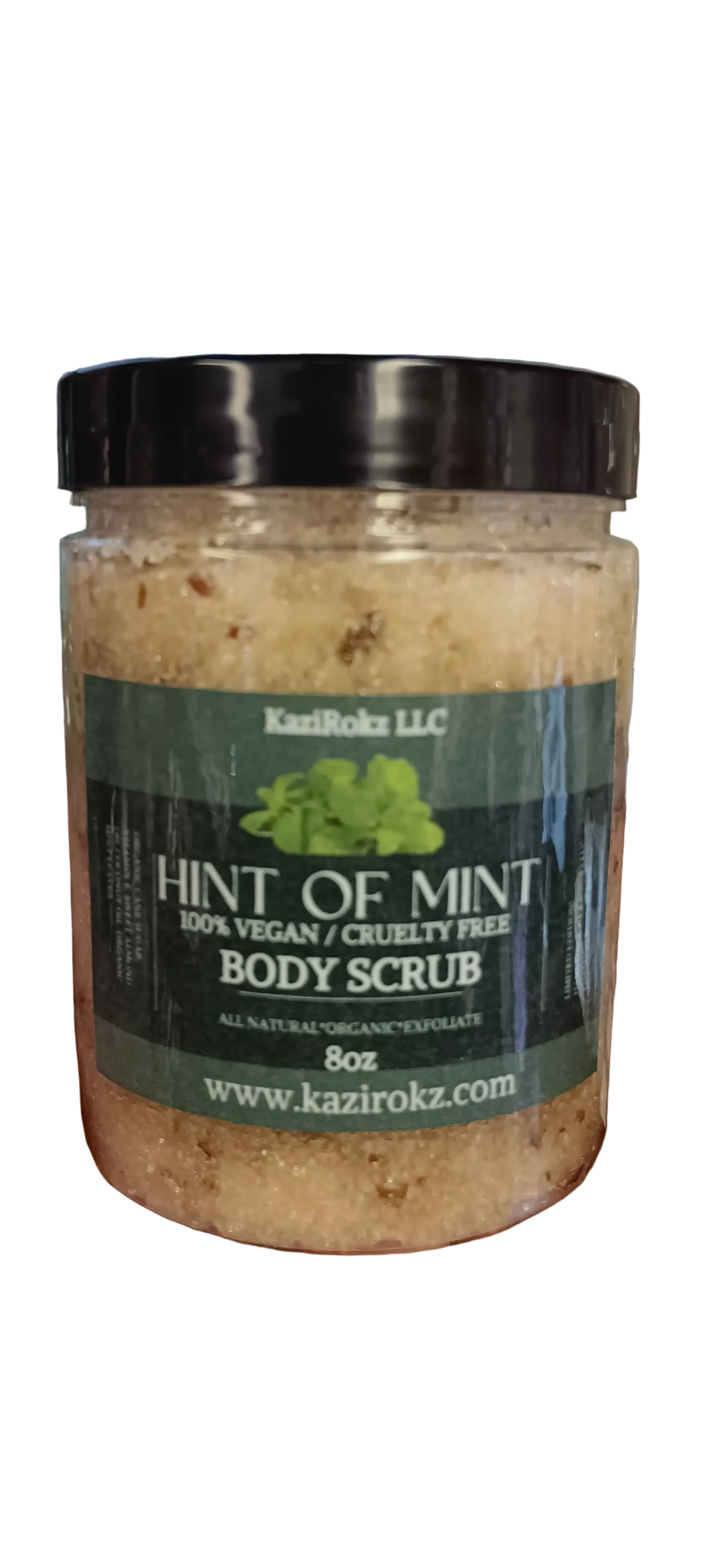 KaziRokz LLCs Hint Of Mint foaming body scrub is sensationally satisfying! Your skin will love this multi purpose, head to toe body scrub. It's made to perfection and if you're into peppermint, then this scrub is perfect for you. Mint has so many unique befits for your skin. Benefits like *RESPIRATORY ISSUE RELIEF*HEADACHE RELIEF*ALLERGY RELIEF*REDUCE NAUSEA*BOOST SKIN HEALTH*PAIN RELIEF*SUNBURN RELIEF*BOOST ENERGY. Not to mention, the smell of mint is very refreshing, relaxing, and therapeutic. It's so soothing and relaxing for the body and skin. It's made with all natural and organic ingredients too. This scrub is perfect for all skin types. It exfoliates and moisturizes your skin. It helps to fight inflammation in your skin, blackheads, pimples/ body acne, dry chapped skin, and more. Release all negative energy and stress. This Body Scrub will help calm and sooth your mind and body! This body scrub comes in a 8oz plastic container with a lid.