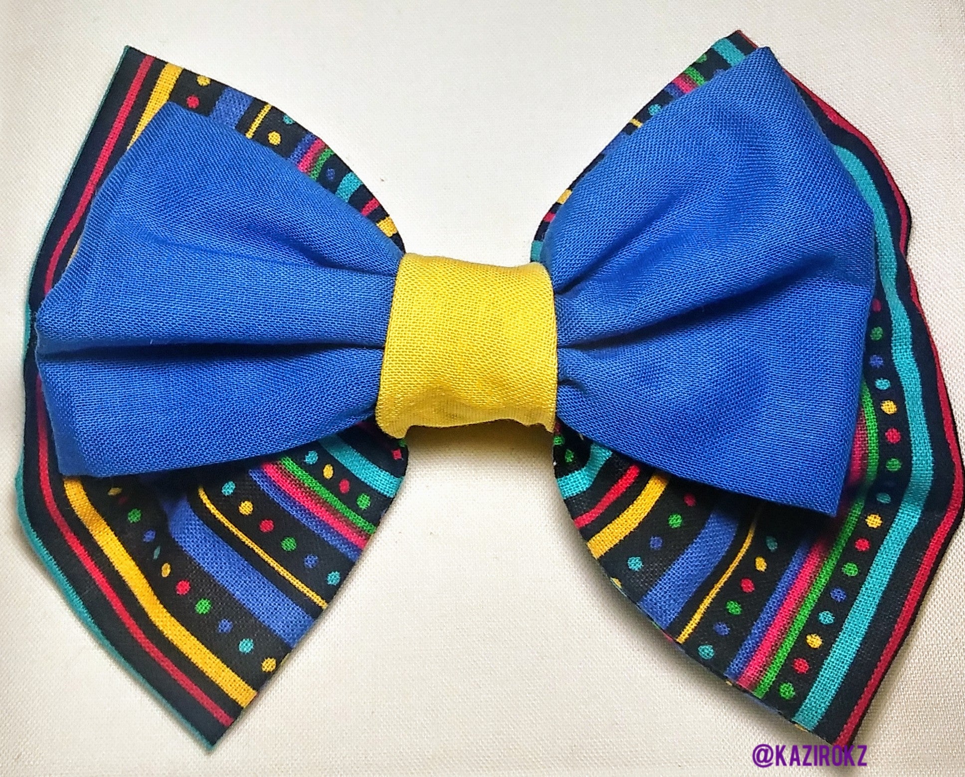 Royal Strips Hair Bow (unique hair bows)(Royal blue,yellow,black,strips)