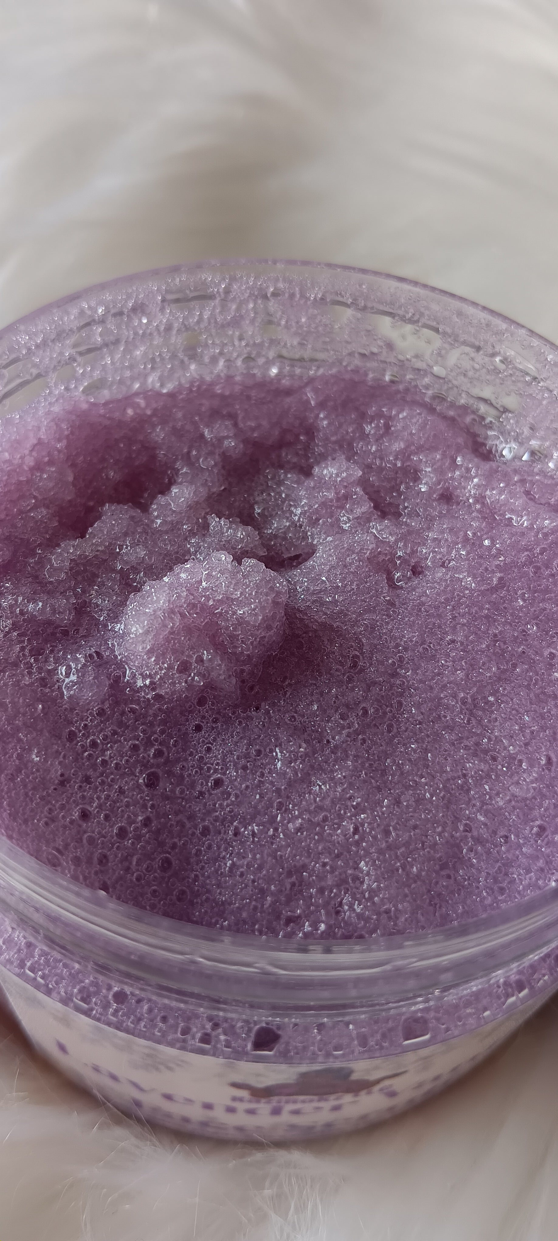 Lavender Vanilla Facial cleanser/ Scrub: This is a foaming facial scrub/ cleanser. It's great for toning skin, clearing up acne, discoloration, hyperpigmentation, and giving you a refreshing look. Your face will feel satisfied and you will feel free of drama and stress.