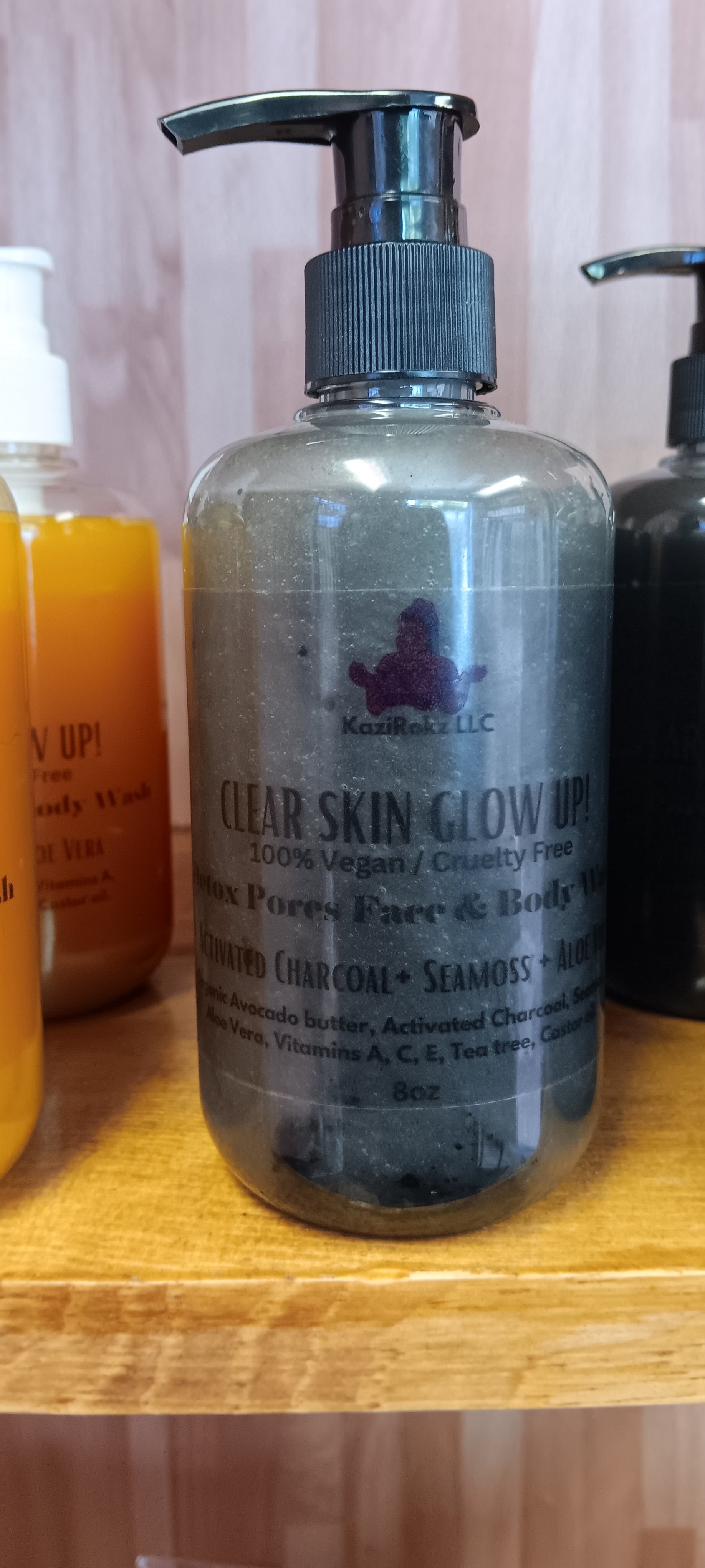 Clear Skin Glow Up! Detox Pores Face and Body wash. 100% Vegan/ Cruelty Free. Activated Charcoal + Seamoss + Aloe Vera
