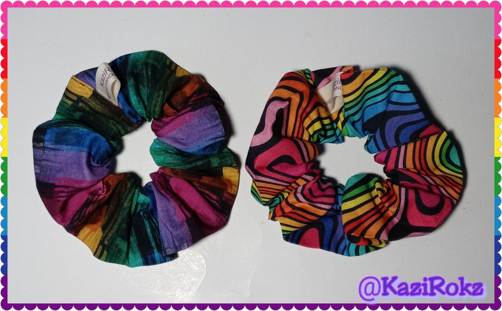 Who doesn't love colorful hair accessories 🌈?!... These hair Scrunchies are perfect for all ages, and any occasion!. Wear it on your hair or wrist!! These scrunchies are also bright, and full of colors.