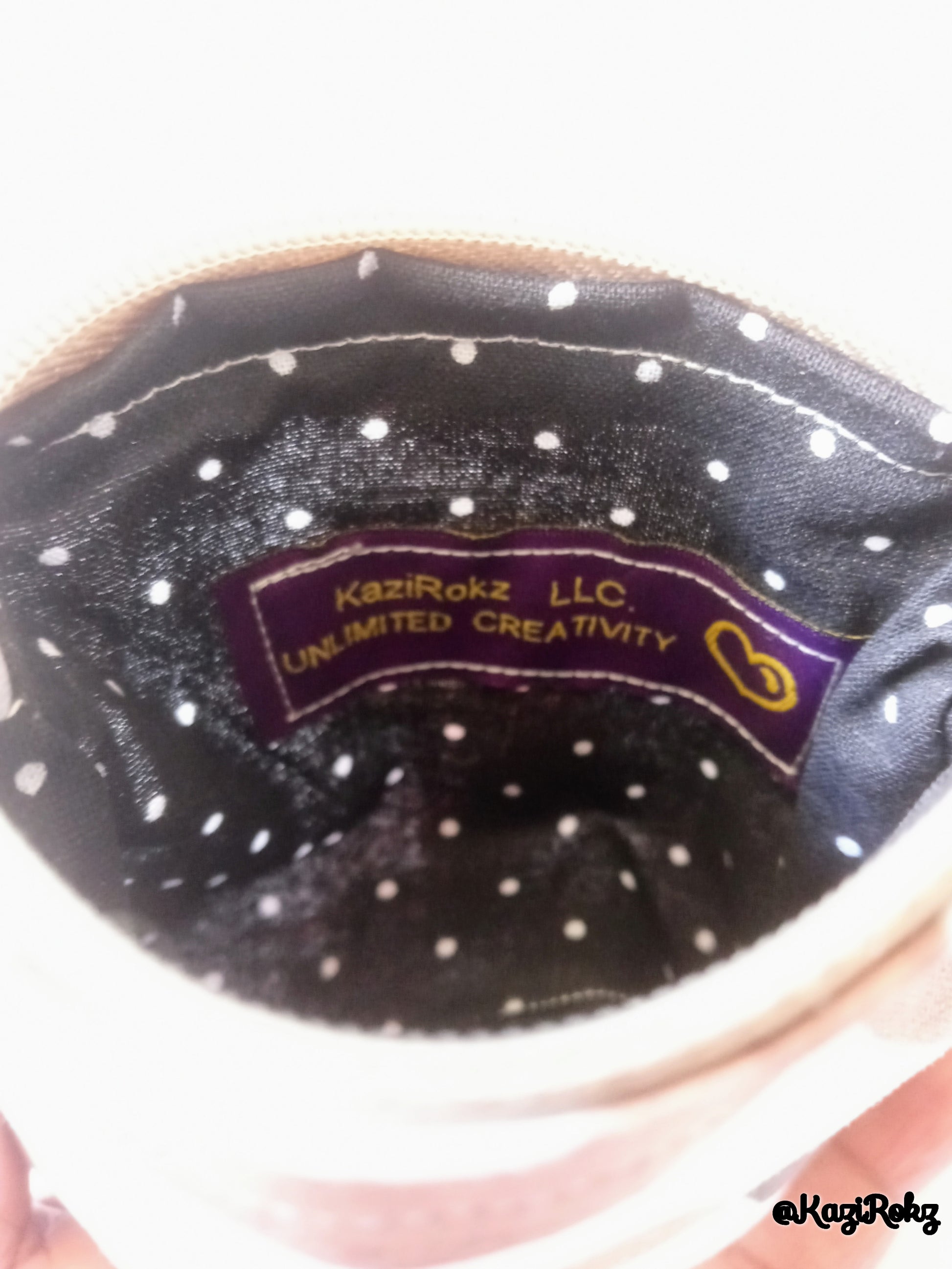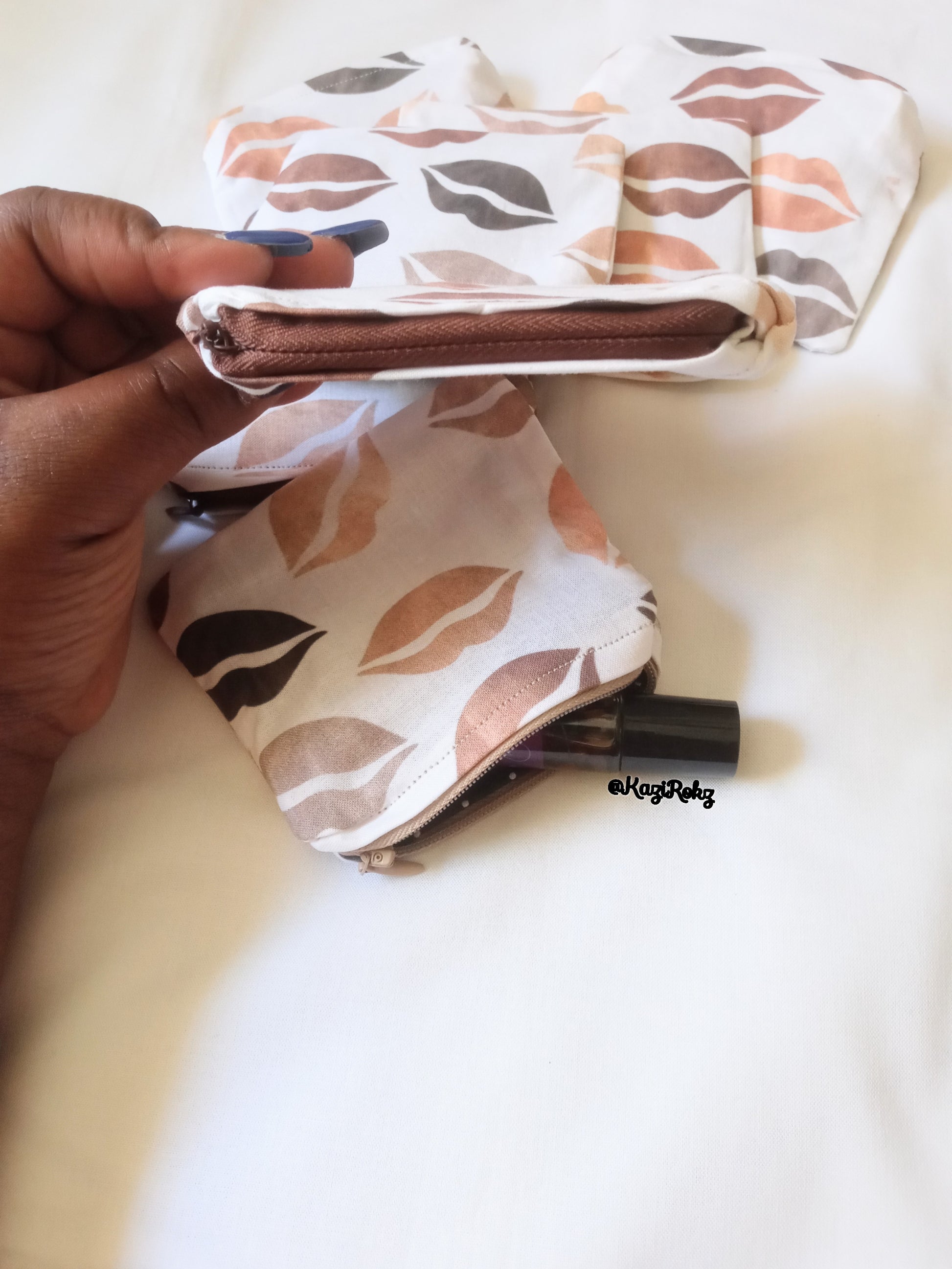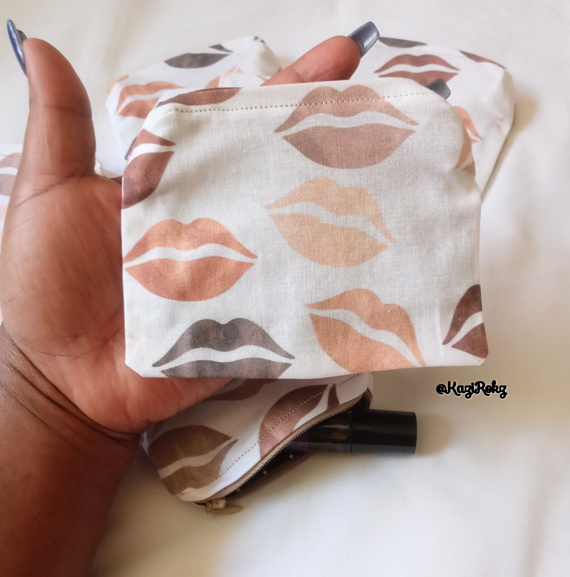 Allow KaziRokz AMAZING & CREATIVE "KISS ME POUCH" to be your everyday go to!!..... These little cute pouches are necessary, and ideal for your everyday use. You can put loose change / money, keys, travel size hand sanitize / lotions, & lip gloss. This pouch is small enough to fit in your purse. This pouch is made with 100% cotton fabric, and 3" long / 5" wide.