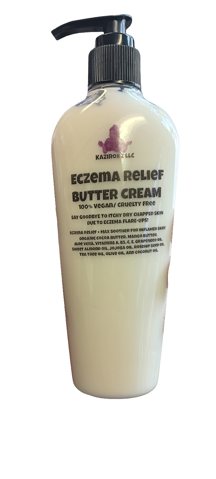 KaziRokz LLC Organic and ALL-Natural Herbal butter cream "ECZEMA RELIEF" is the best FORMULA for all skin types. This butter cream is great for aromatherapy, clearing sinuses, clearing up body acne, firming / toning skin, moisturizing itchy skin, healing eczema / psoriasis, plus more. This butter cream is intended to promote healthier skin! It's packed with organic herbs, vitamins, and organic oatmeal.