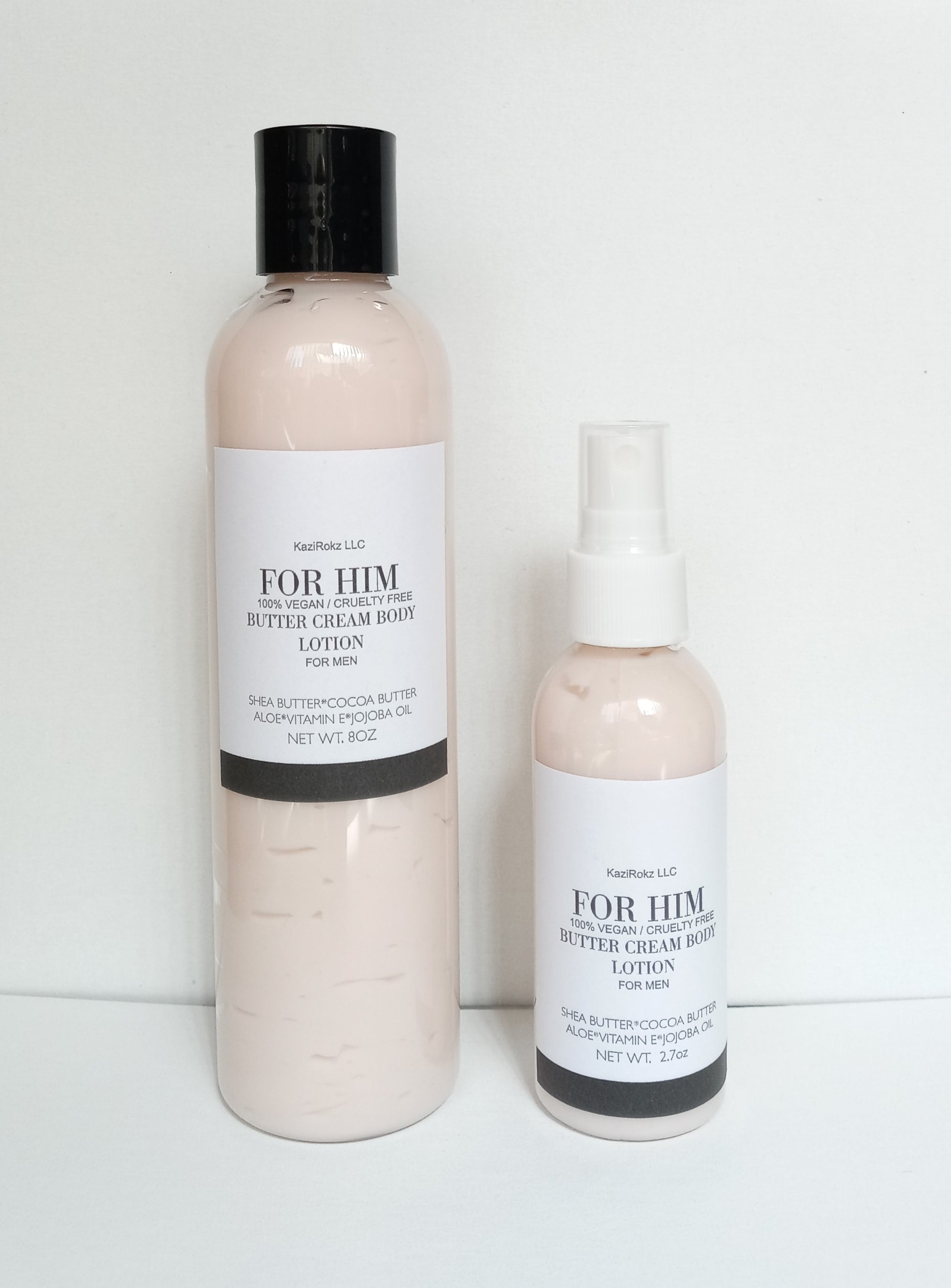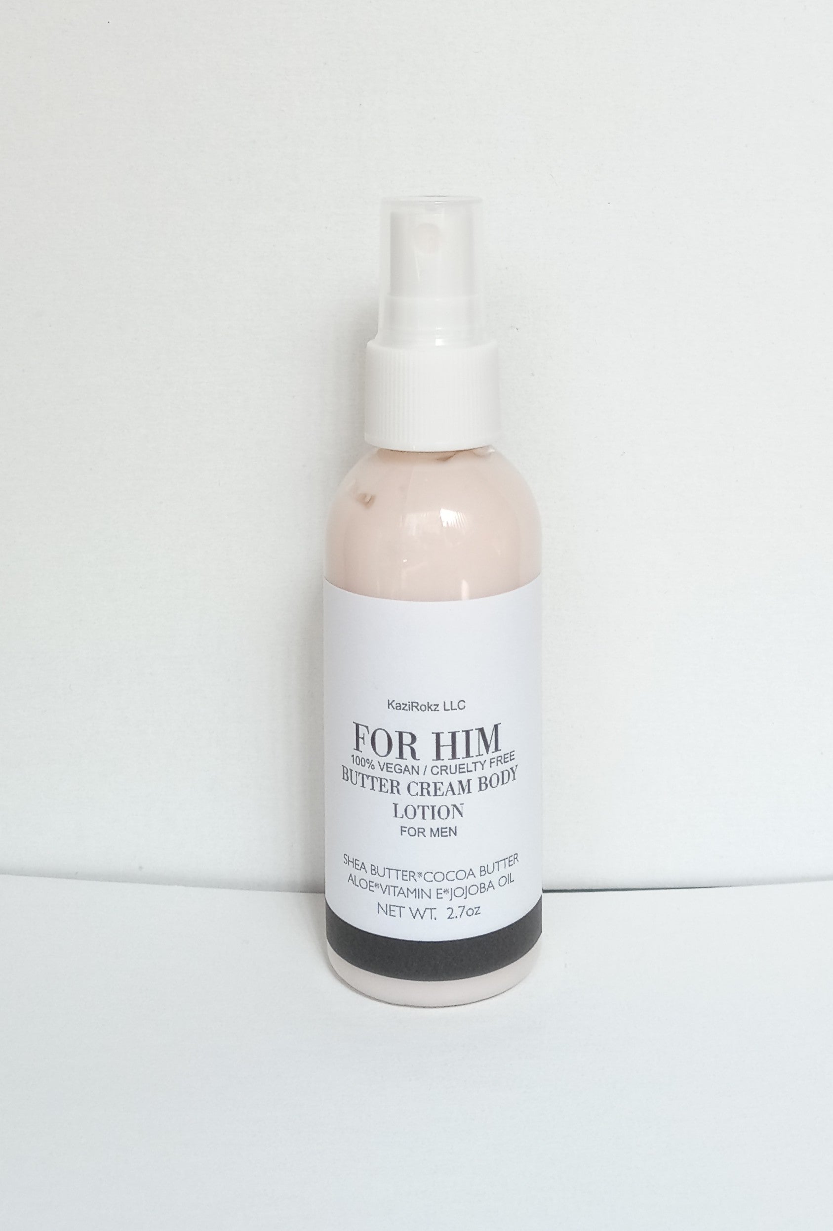 Hello men! KaziRokz LLCs has handcrafted an all-natural and organic butter cream body lotion catering to your need's. This body lotion is good for healing chapped and dry skin. It has a nice scent crafted just for men.