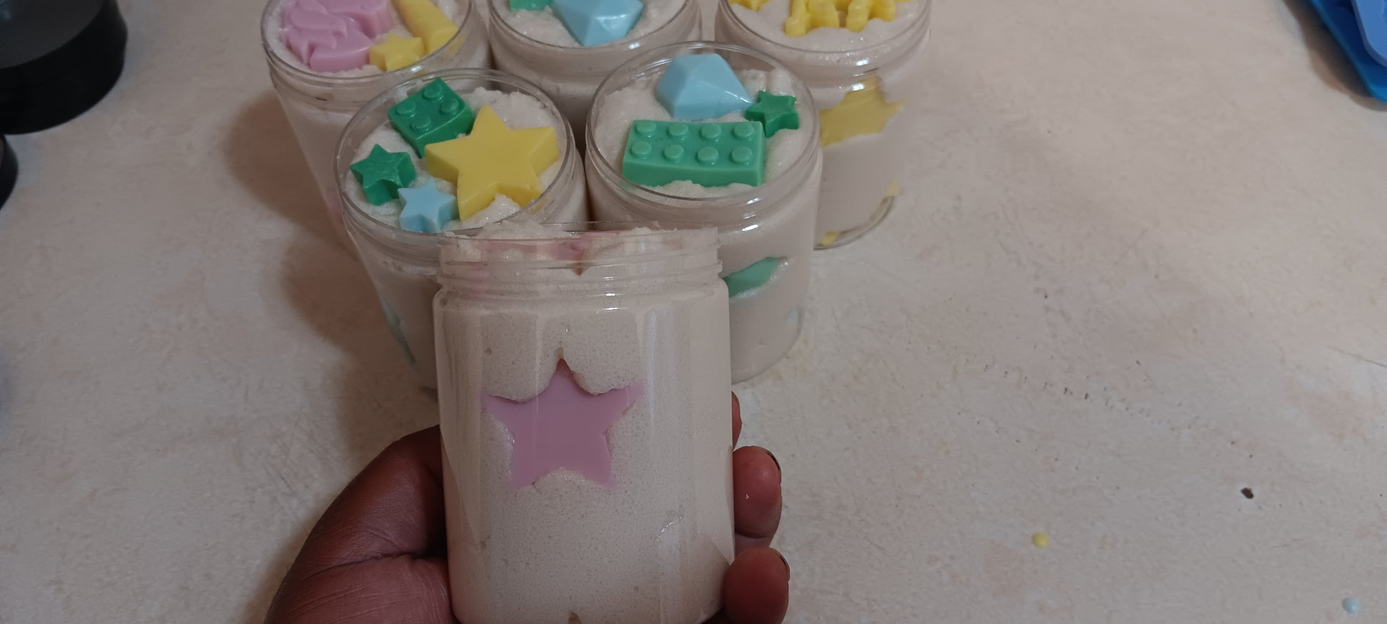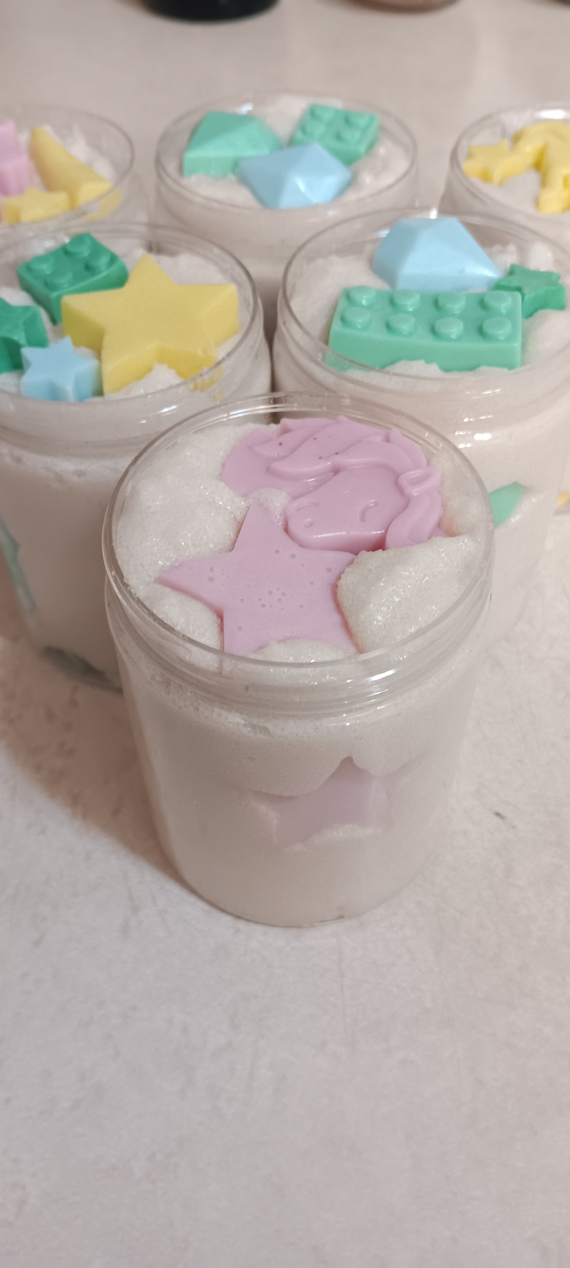 This scrub will have your child ready for a fun and easy shower/ bath time. Are you ready to give your childs  skin a makeover? Then this Vegan / Cruelty free MAX EXFOLIATOR + SKIN POLISHER light foam body scrub with little fun size shaped soaps is right for you. It smells amazing too!! It's Coconut strawberry is 1 of a kind, and it's time to give your skin some TLC with KaziRokz light foaming body scrub. Who can say No to a gental but powerful body scrub combined with a creamy relaxing lathered soap? This scrub is 100% Vegan / Cruelty free, it's gental on all skin types, and all genders friendly💜. This scrub gently exfoliates, renew, and basically polishes your skin. It helps with dark spots/ blemishes, acne, and razor bumps / burns. After using this scrub on your childs skin in the shower or bath, your childs skin will feel fresh, and revitalized. Rejuvenating, smooth, and moisturized!! Let's get rid of dead skin, body acne, and strawberry skin!. Your childs skin will love you for using this Vegan / cruelty free body scrub. This scrub is also great for dry, and damaged skin due to eczema / psoriasis. You can use this scrub from head to toe. The little fun size soaps that are inside the scrub makes an awesome hand soaps. We recommend that you use it during bath time and use it twice a week. KEEP IN A SAFE DRY PLACE (AWAY FROM CHILDREN), AND MAKE SURE TO NOT GET WATER INSIDE OF THE SCRUB.