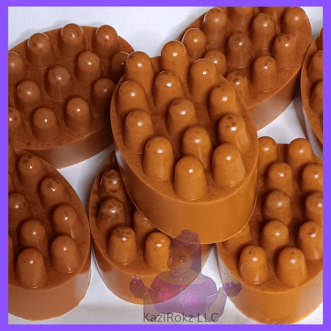 Say goodbye to dark spots! KaziRokz LLC. Organic and ALL Natural brightening facial soap bar is great for clearing up stubborn dark marks on your face and skin. It's handcrafted to perfection in small batches and made with organic Coaco butter, Turmeric, and Aloe vera. If you're looking for glowing skin, then this soap barvis perfect for you. It's packed with all of you vitamins and minerals that you're skin need get your GLOWING. It's also great for aiding in repairing damaged skin from eczema / psoriasis, scars, acne, discoloration, hyperpigmentation, and more.