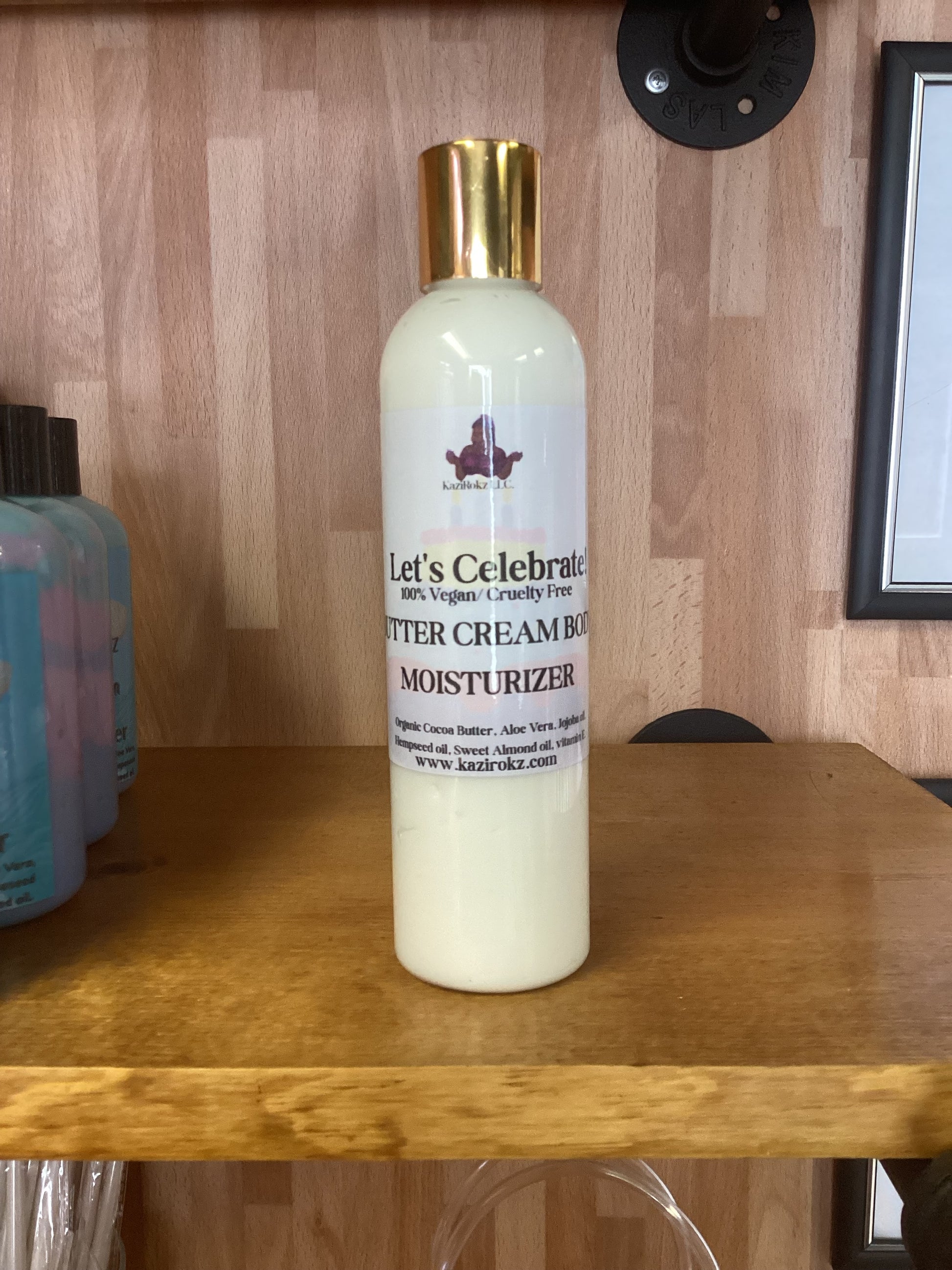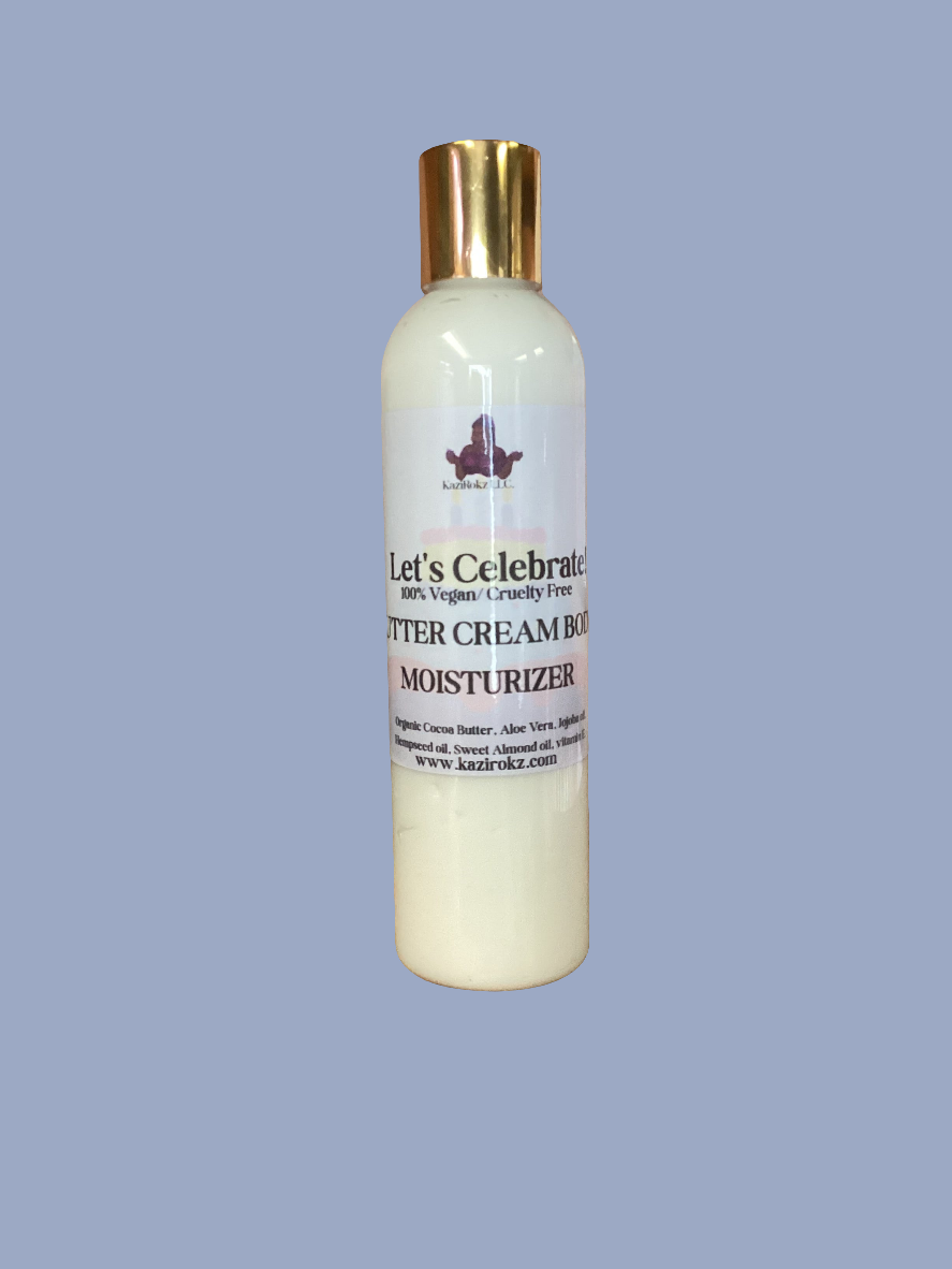 KaziRokz LLC Organic and ALL Natural Advanced Brightening Facial and Body Butter Cream moisturizer "LET'S CELEBRATE" is the best gift for your skin. It smells amazingly pleasant... This facial/ body moisturizer is great for aromatherapy, soothing dry skin, firming / toning skin, and mostof all Brightening your skin. This body moisturizer is intended to promote healthier skin! It's packed with organic herbs, vitamins, and organic oils to assist your skin with maintaining your elasticity, Collagen, and healthier appearance. It's very gentle and smooth texture when applying to your skin. You can use this butter cream from head to toe. It's great for protecting your skin from the sun too.