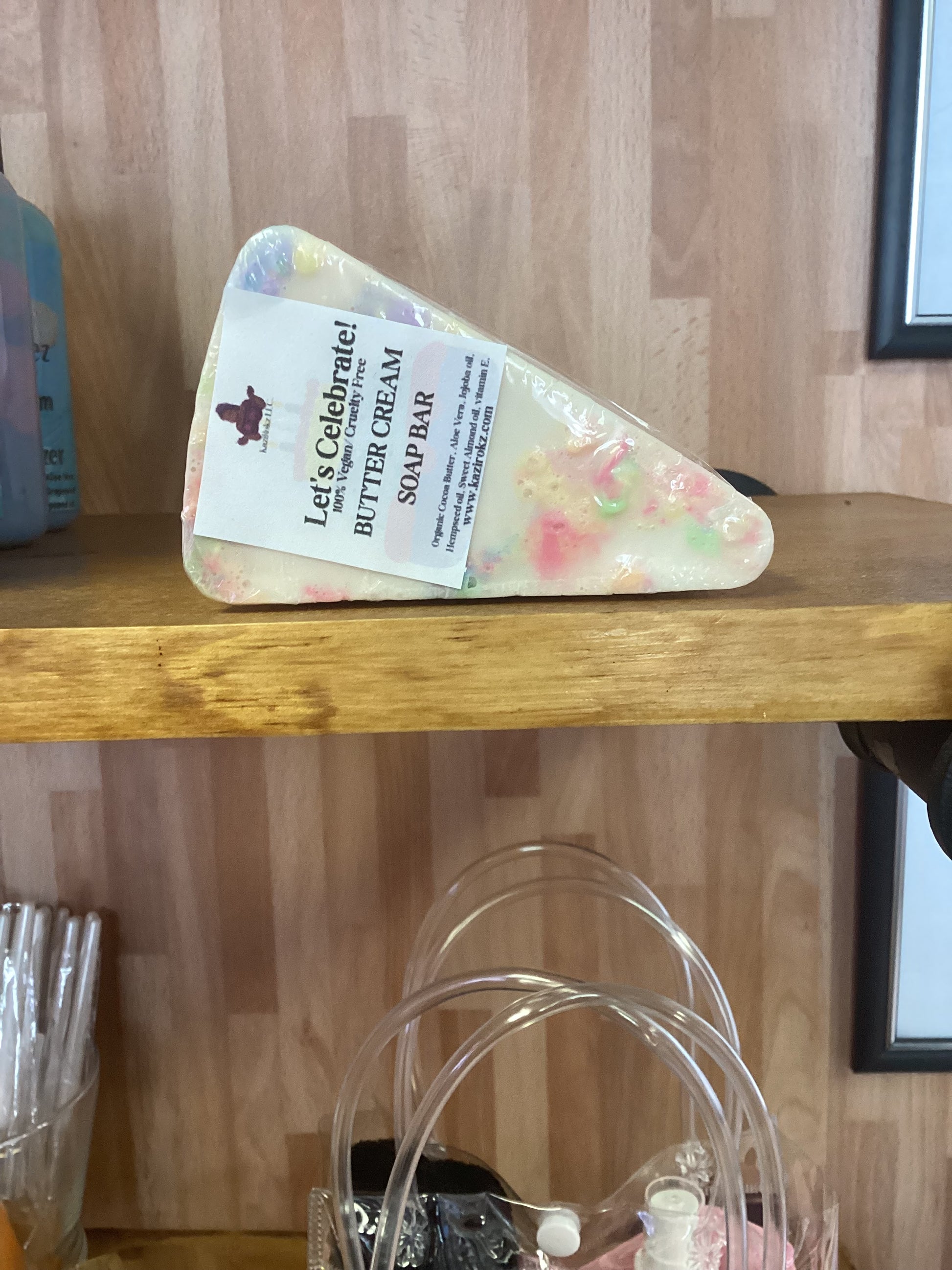Let’s Celebrate Cake Slice Soap bar. Goats Milk Facial and body soap bar. 100% VEGAN/ CRUELTY FREE