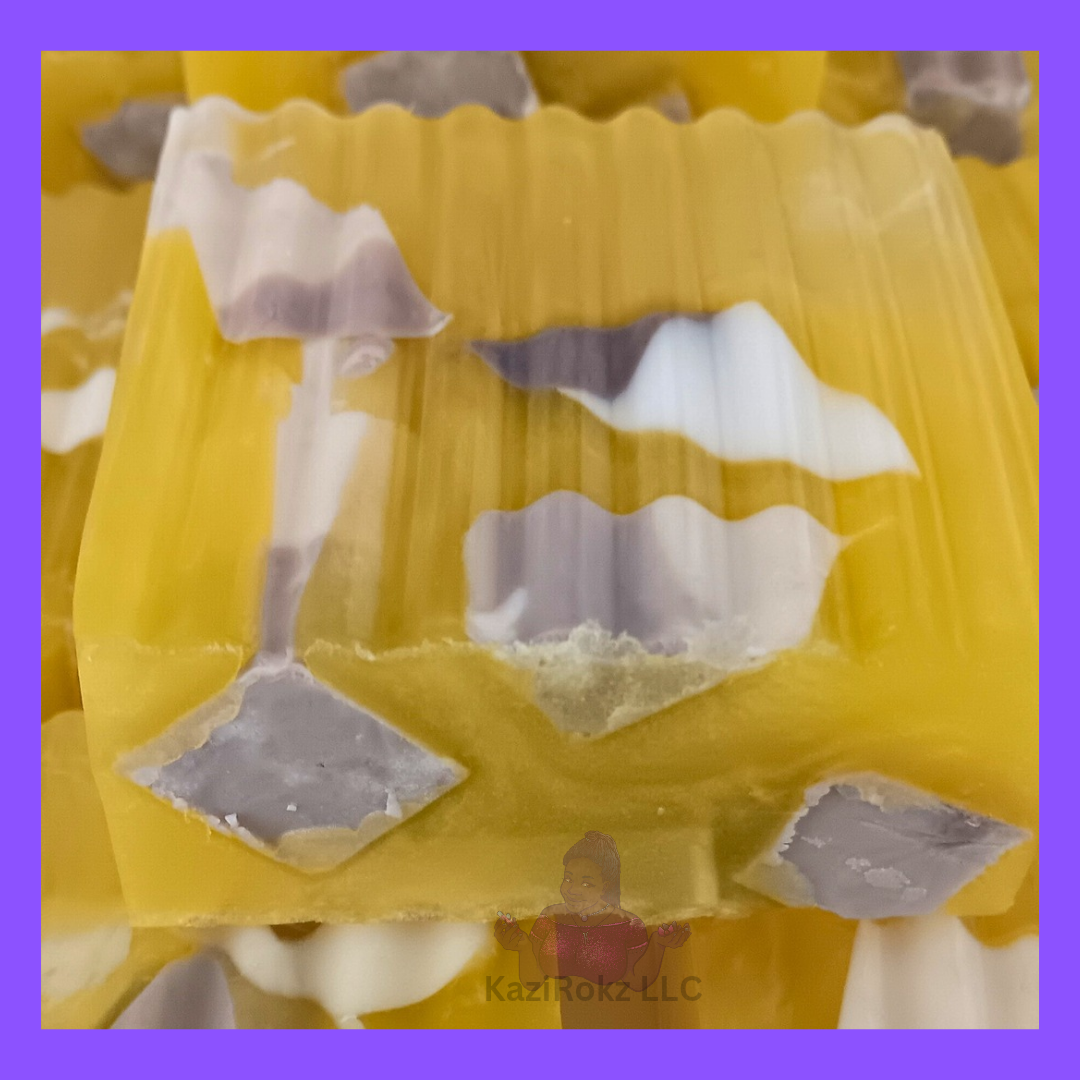 KaziRokz Lotta Pina Colada Yoni soap bar is 100% Vegan / Cruelty Free, and is soothing on your skin. This herbal vaginal cleanser is packed with all the nutrients, vitamins, and herbs that your vagina/ skin needs to survive any weather, season, and skin condition. This soap bar helps to protect your vagina from bad bacteria, yeast infection, odor, itch, ingrown hairs, and more. This Unique tri colored soap bar works magic on your skin, and it is Pineapple Coconut scented. It will get your body clean from head to toe, and amazing lathered, and creamy texture will leave your skin smooth/ soft. It's great for all skin types. It's a luxurious themed soap bar. It helps with blemishes, blackheads, pimples, eczema, and dry chapped skin. After using this soap bar, your skin will feel moisturized and revitalized. This soap easily lathers your skin, cleaning off dirt, oil, and germs / bacteria from your skin. It's also safe for your entire family.