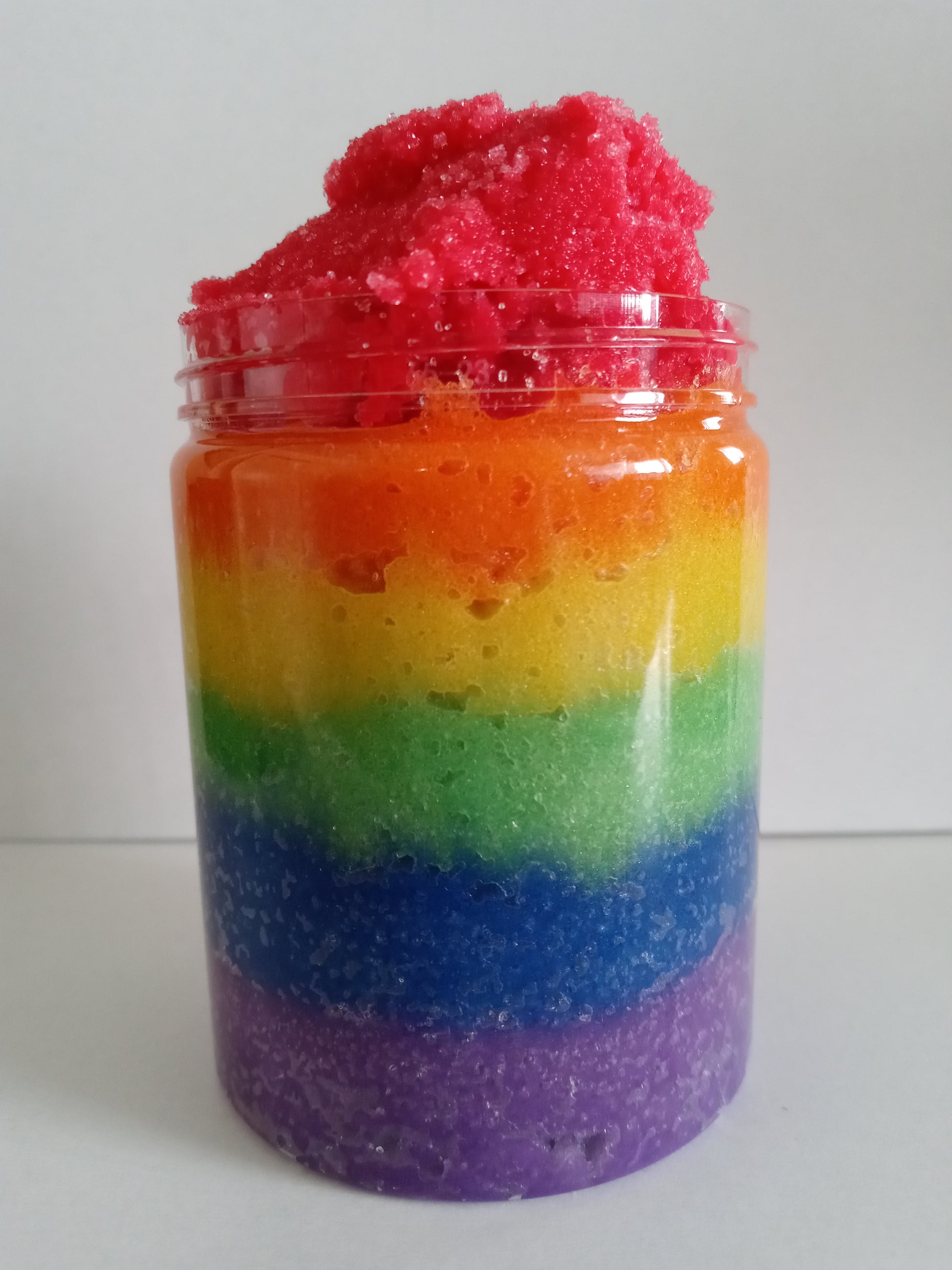 Its time to Exfoliate with style… Say hello to our foaming body scrub. KaziRokz LLC RAINBOW themed Body scrub is one of a kind. This amazing 100% Vegan / Cruelty Free Body Scrub is great for Exfoliating and hydrating your pores naturally! This body scrub is handcrafted to perfection in small batches and It has a soft and smooth texture so it's extra gentle on your skin. It has a custom fragrance / scent that you can not resist. It helps with body / face acne, blemishes, eczema, and is great for all skin types.
