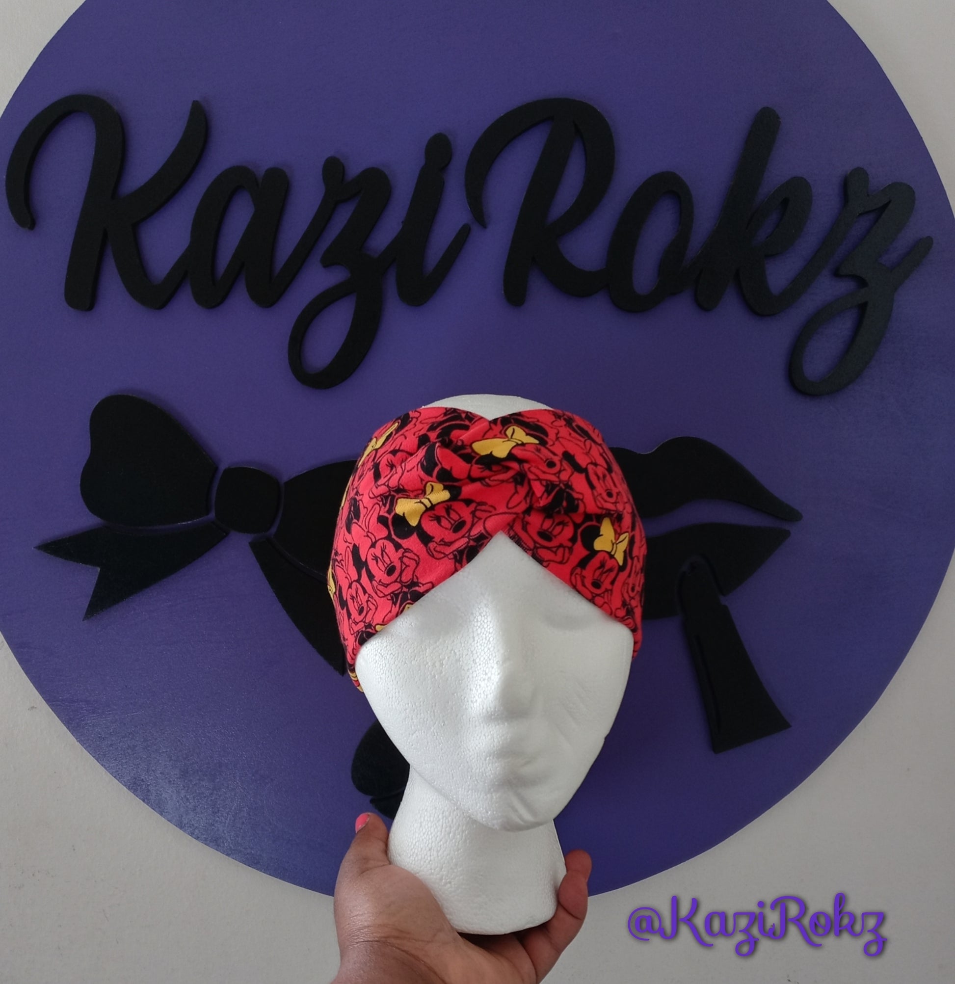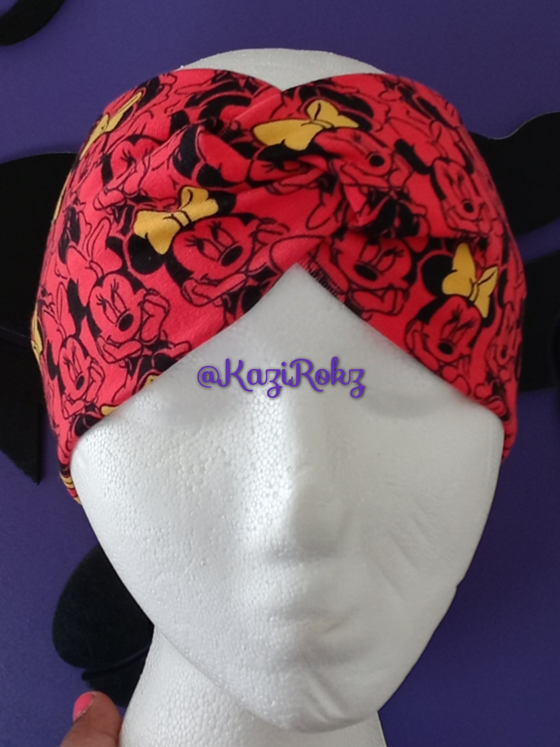 Who doesn't love Minnie Mouse?!!! Right!... Everyone loves Disney themes everything!!! If you're a fan of Minnie Mouse then this headwrap is perfect for you. This is a Beautiful, Unique, and creative knotted headbands for toddlers, big kids, and adults with small size head!!. Let your baby girl stay stylish, and comfortable with this cute, soft, and stretchy cotton headband with a knotted center. This headband won't leave any marks on your childs head. It's very stretchy, and will fit your childs head comfortably!!.