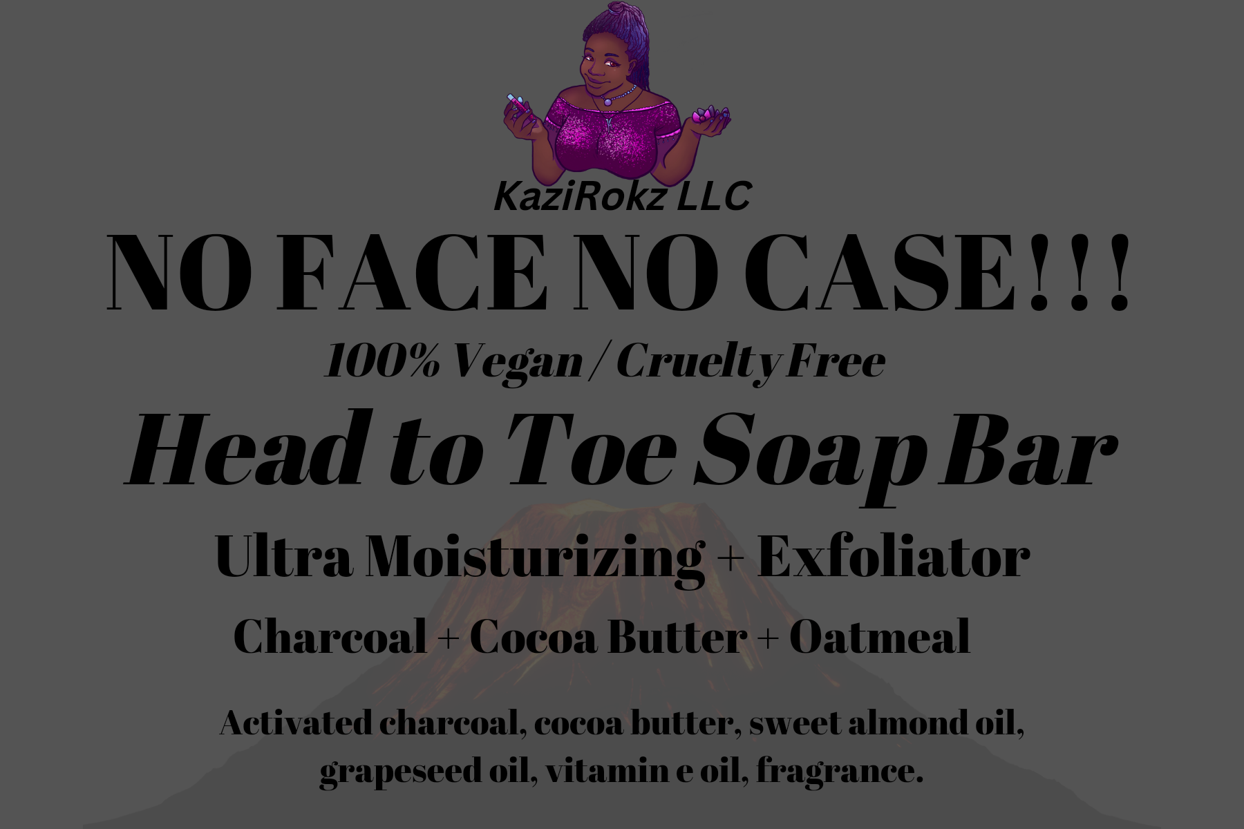 KaziRokz LLC creative hand crafted multi purpose soap bar is on of kind. It’s ultra hydrating and moisturizing. It’s an gentle soap bar that’s fully loaded with vitamins A, B12, C, E, 100% Vegan / Cruelty Free, and is soothing on your skin. It's packed with all the nutrients / vitamins that your skin needs to survive any weather, season, and skin condition. This activated charcoal + Oatmeal soap bar works magic on your skin, and it smells amazing too (sweet woodsy scent). It helps to fight acne / body & face, works wonder's on eczema prone skin/ sesitive skin, and this soap bar will get your body clean from head to toe. It's an head to to antibacterial / antifungal soap bar with detoxifying properties. It deeply cleanse your skin, and its a gentle exfoliator. Amazing lathered, and creamy texture will leave your skin smooth, soft, and relaxed. It's great for all skin types. It also helps fight inflammation and toxins on your skin.
