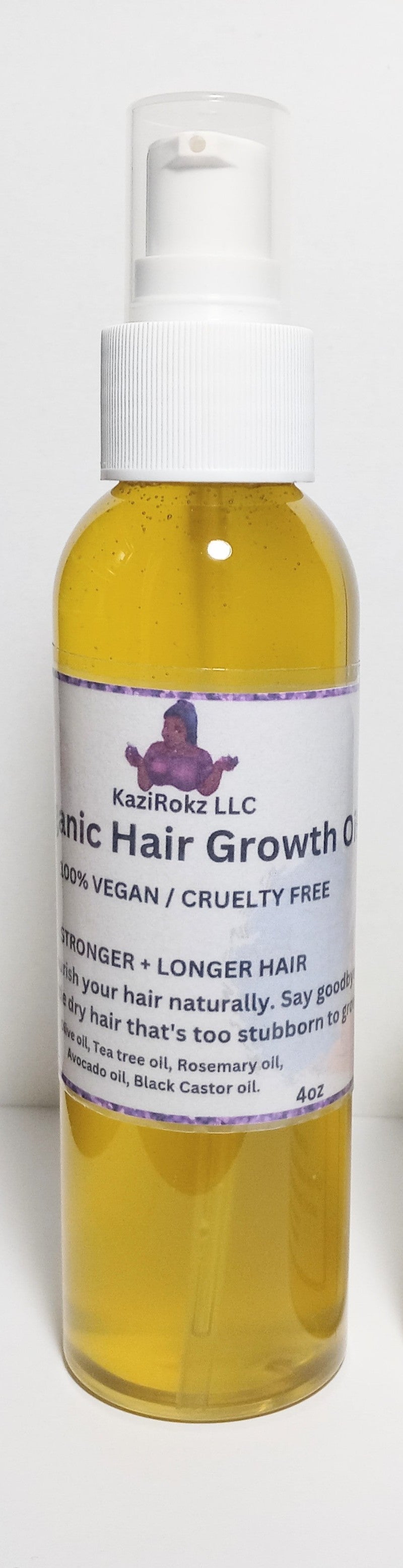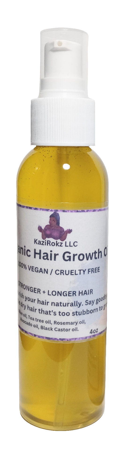 This Organic and All Natural Hair Growth Oil is handcrafted by KaziRokz LLC. This oil helps to promote healthier longer hair. It's 100% Vegan / Cruelty Free. It's great for all hair types, age's, and genders. It's naturally scented and a little goes a long way. You can use this oil any time of the day and any occasion. This oil is intended for the use of growing hair! However if you're dealing with dry damage hair, this oil is good for that too.
