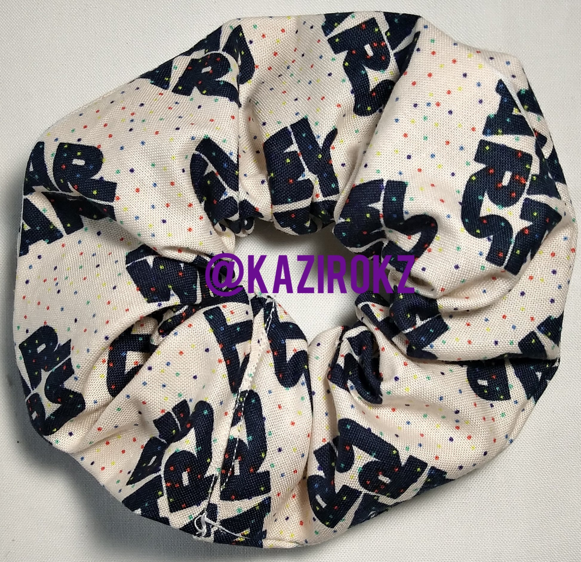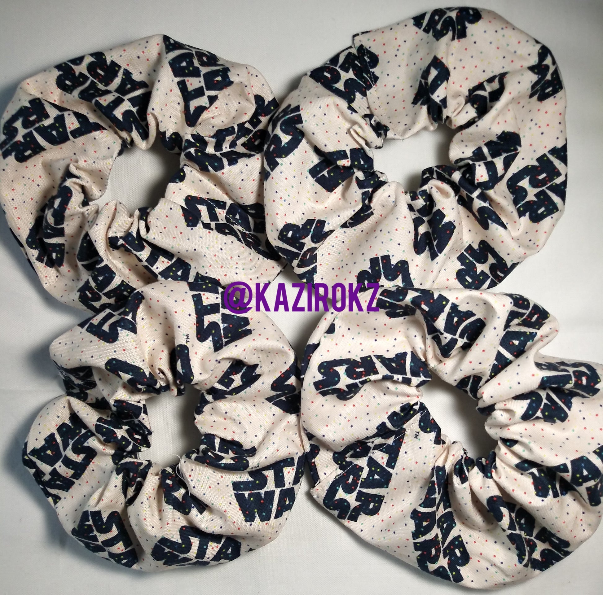 This hair scrunchie is cool and perfect for Star Wars fans. It's colorful and bright and will stand out for any and all occasions!! It's handmade with 100% cotton(cool Star Wars fabric with polka dots), thread, and elastic. It's perfect for all ages.