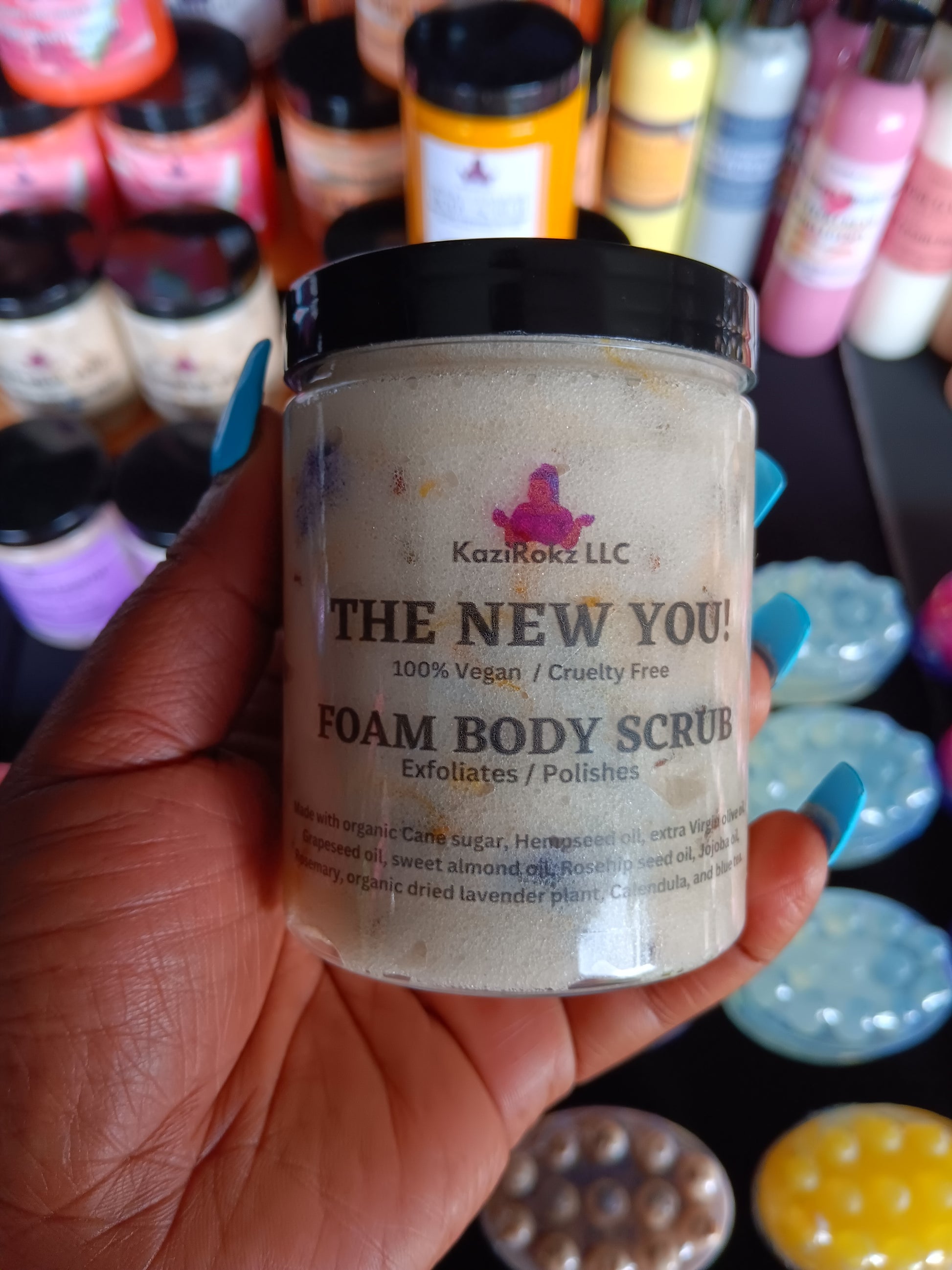 The New You! Foam Body Scrub, (exfoliate & polish)Skin firming, (100% vegan / Cruelty Free) 8oz