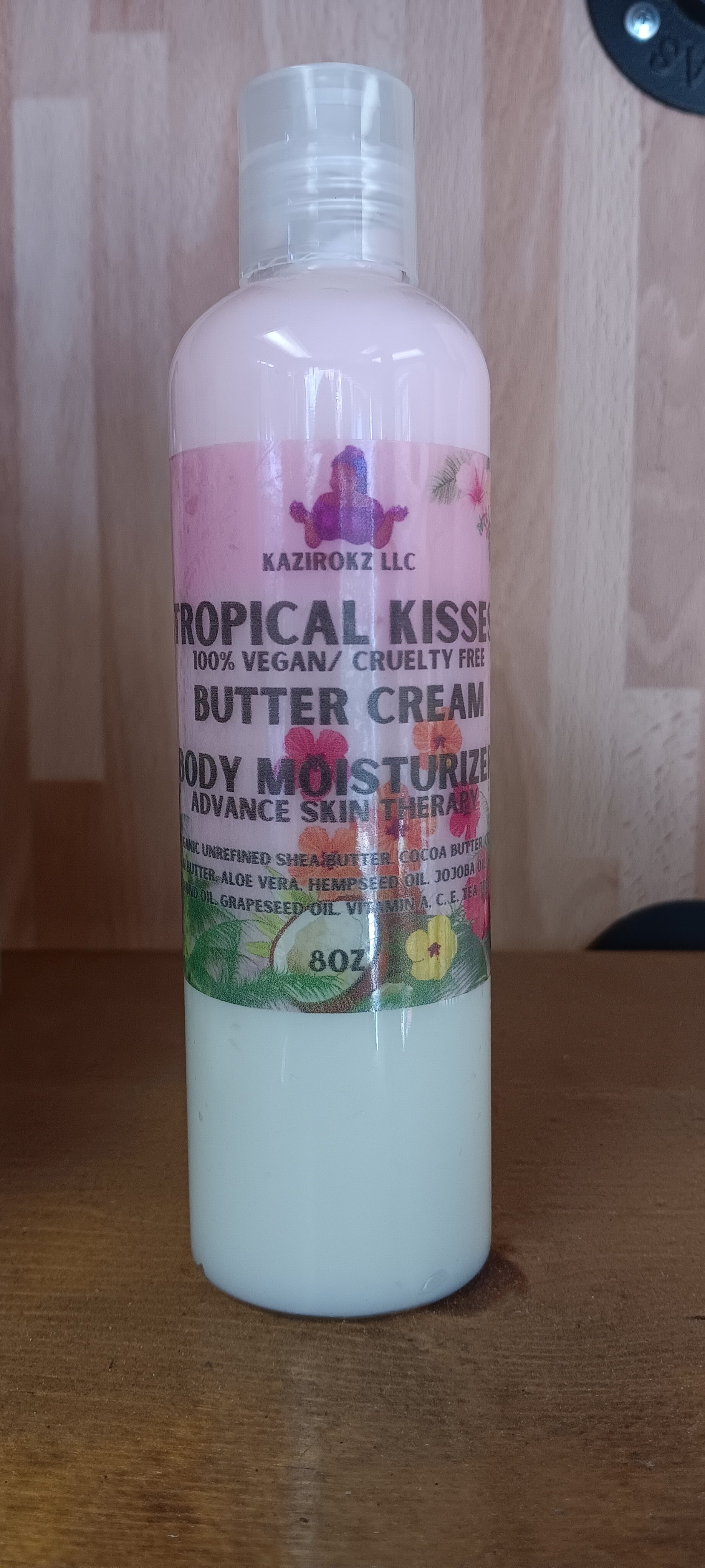 Tropical Kisses Butter Cream Body Moisturizer! Advance Skin Protector. 100% Vegan/ Cruelty Free. 8oz