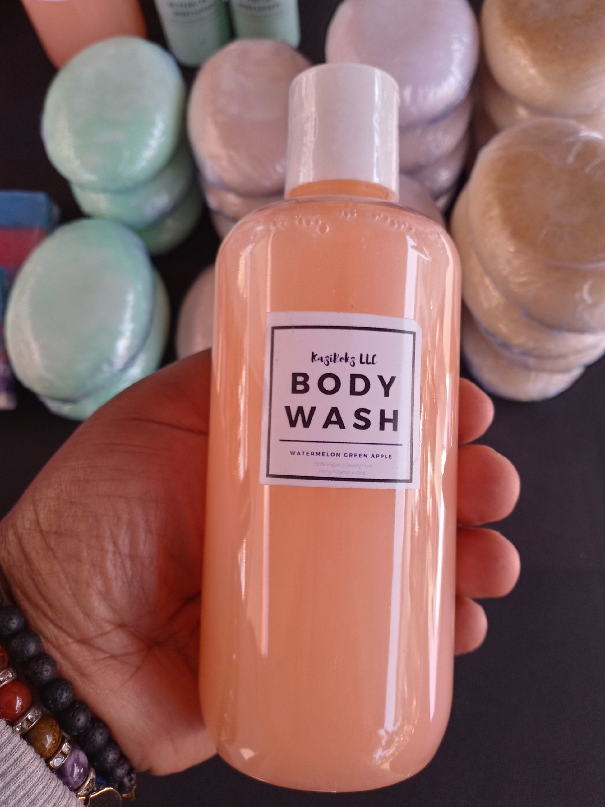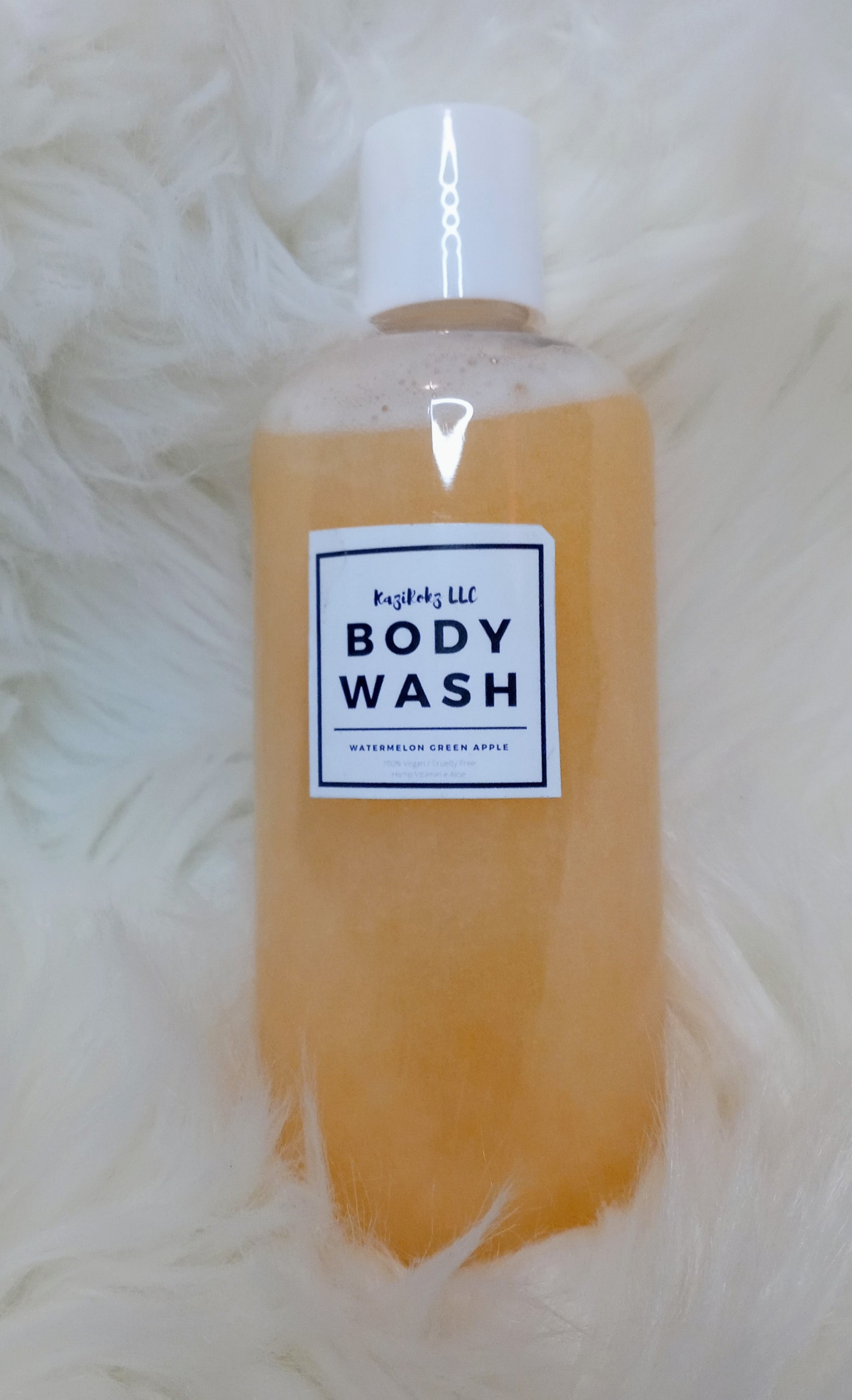 KaziRokz "Watermelon Green Apple" Vegan Body Wash is free of harsh chemicals, and is 100% VEGAN (FREE OF ALL ANIMAL DERIVED PRODUCTS). This botanical herbal Vegan body wash is specially made for your entire body, and not to mention It smells amazing too. This uniquely crafted Vegan body was has a refreshingly clean Watermelon Green apple scent. It's 100% Vegan friendly, and Cruelty free so it's safe for your skin, and the earth. This Vegan Body Wash has a creamy, but refreshing texture. It's gentle on your skin, and is great for all skin types. It easily lathers your skin, cleaning off dirt, oil, and germs / bacteria from your skin. This body was is great for kids and adults. It Leaves your skin moisturized, and revitalized. Plus your skin will feel / look smooth, soft, and refreshed. This Vegan body wash will love your skin like no other. Treat your skin right, and give your skin the love that it needs, and deserves.