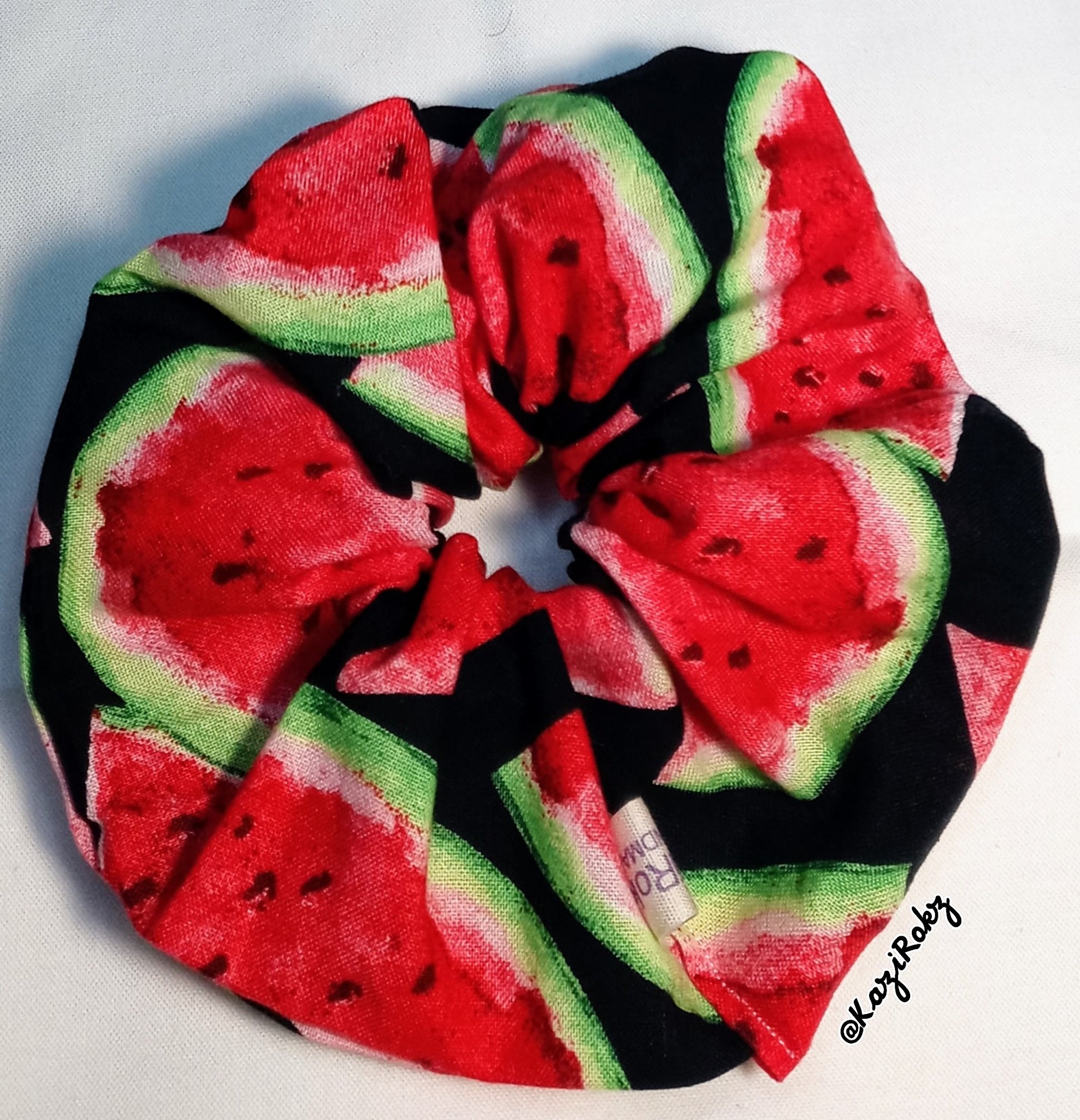 This 5 pack Hair Scrunchie set is perfect for your little girl, teenager, or for yourself! It's a mixture of different patterns of watermelon. They're Jumbo in size, but fits medium size scrunchie. You can wear it for a ponytail holder's or wristbands. Who doesn't love watermelon? Not only is it healthy for you, it also looks good as hair accessories!