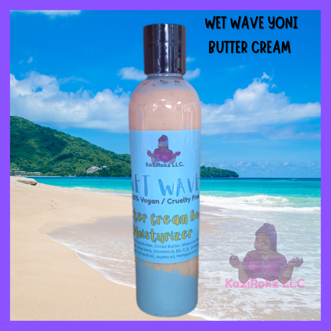 KaziRokz LLC WET WAVE BUTTER CREAM BODY MOISTURIZER is an advance skin therapy + eczema treatment. It is 100% Vegan and Cruelty Free and has a refreshing scent. This butter cream formula is extra thick and will keep your skin fresh plus healthy. It's ultra hydrating and moisturizing too. It's handcrafted to perfection with unique vitamins and minerals that your skin needs to maintain a healthy glow. It's perfect for absorbing moisture and keeps your skin from becoming inflamed or from flaring up (eczema or psoriasis flair up). If you have extremely dry skin, eczema / psoriasis, rosacea, sunburns, blemishes, or damaged skin. This butter cream will help heal and restore you skin to its natural state. It's everyone friendly, gentle on your skin, and pleasant to smell. This lotion is ideal for promoting healthy skin so look no further than this product!