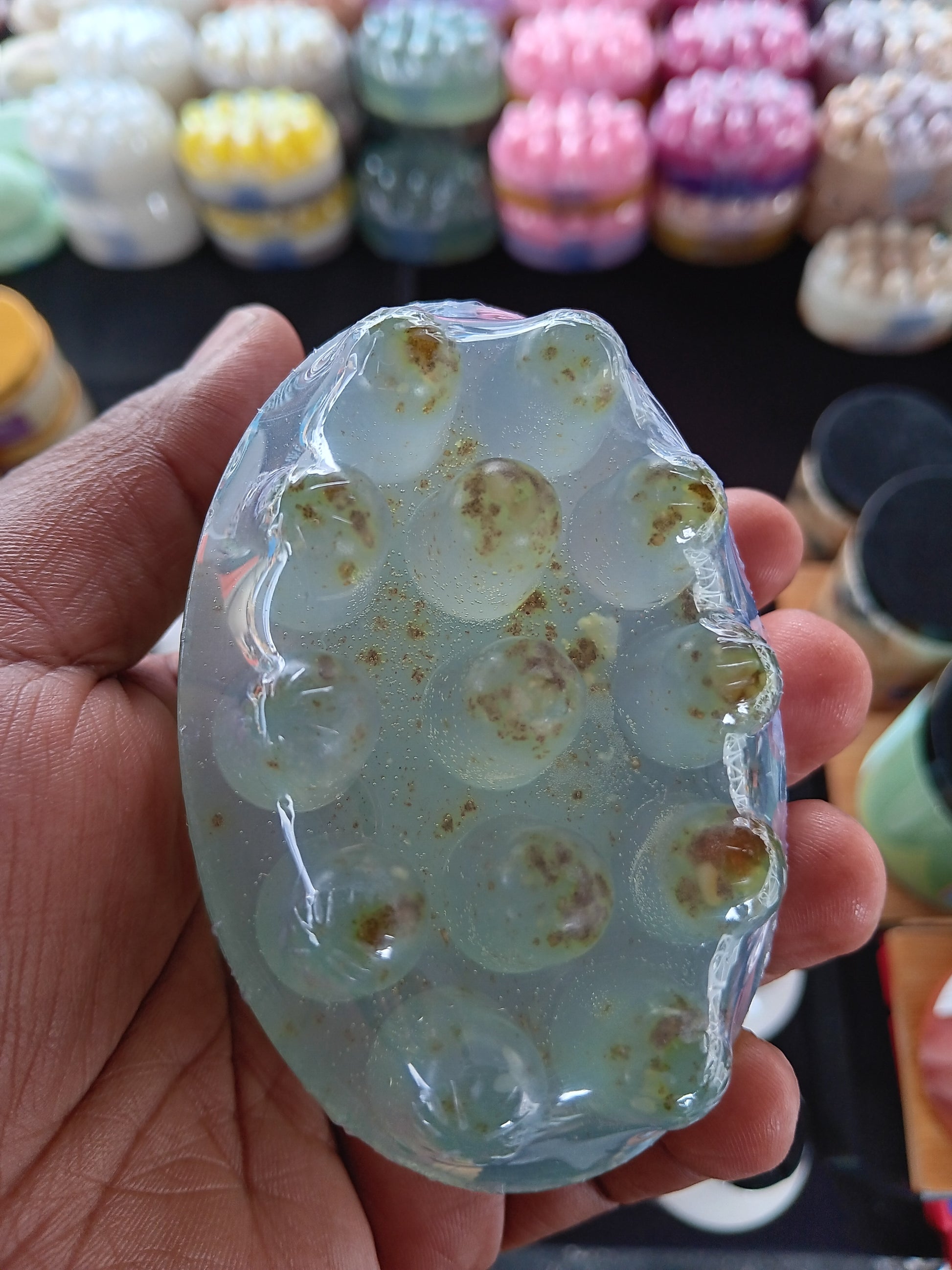 How To Use: Apply massage soap bar to wet face /skin in a circular motion. Allow soap to lather your skin, use was cloth or sponge to scrub skin and clean skin. Wash soap suds off skin with water when finished cleaning your face body in shower or bath.
